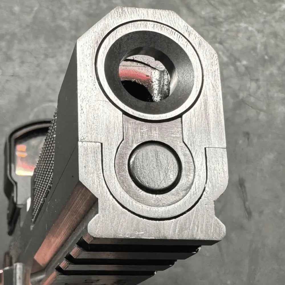 The Flush Cut & Reverse Crown effectively protects your pistol's rifling from damage by creating a funnel that redirects potential impact towards the center of the barrel. The precision filing technique brings the barrel even with the slide face, providing superior protection. Keep your pistol in top condition with this advanced feature.